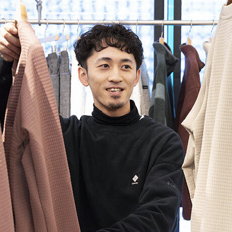 コロンビアの接客はお客様との間に壁をつくらず、自分から積極的に声をかける姿勢を大切にしています。商品をただ販売するのではなく、お客様目線で「どんな場面で使いたいのか」「その先にどんな体験があるのか」を一緒に考えるスタイルです。お客様と繋がることで、コロンビアブランドを体験し、満足いただける店舗を作る。それが私たちの遣り甲斐や楽しみでもあります。