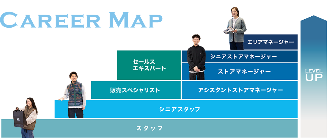 トレンドや着こなし、アウトドアアクティビティのアドバイスなどの接客販売だけでなく、ディスプレイ変更や在庫管理など、売上計画の達成に向けての施策提案などもお任せします。