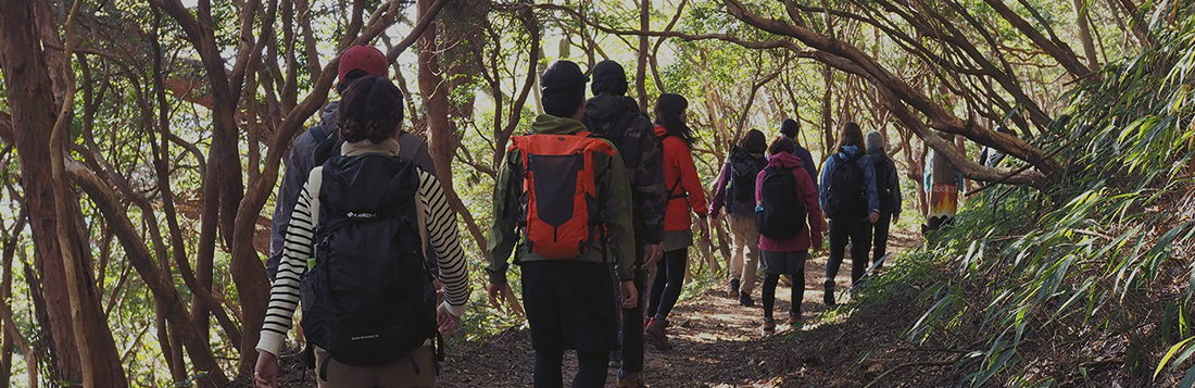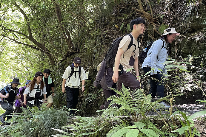 トレッキング研修を通じて、同期スタッフとともにアウトドアフィールドを歩きながら、